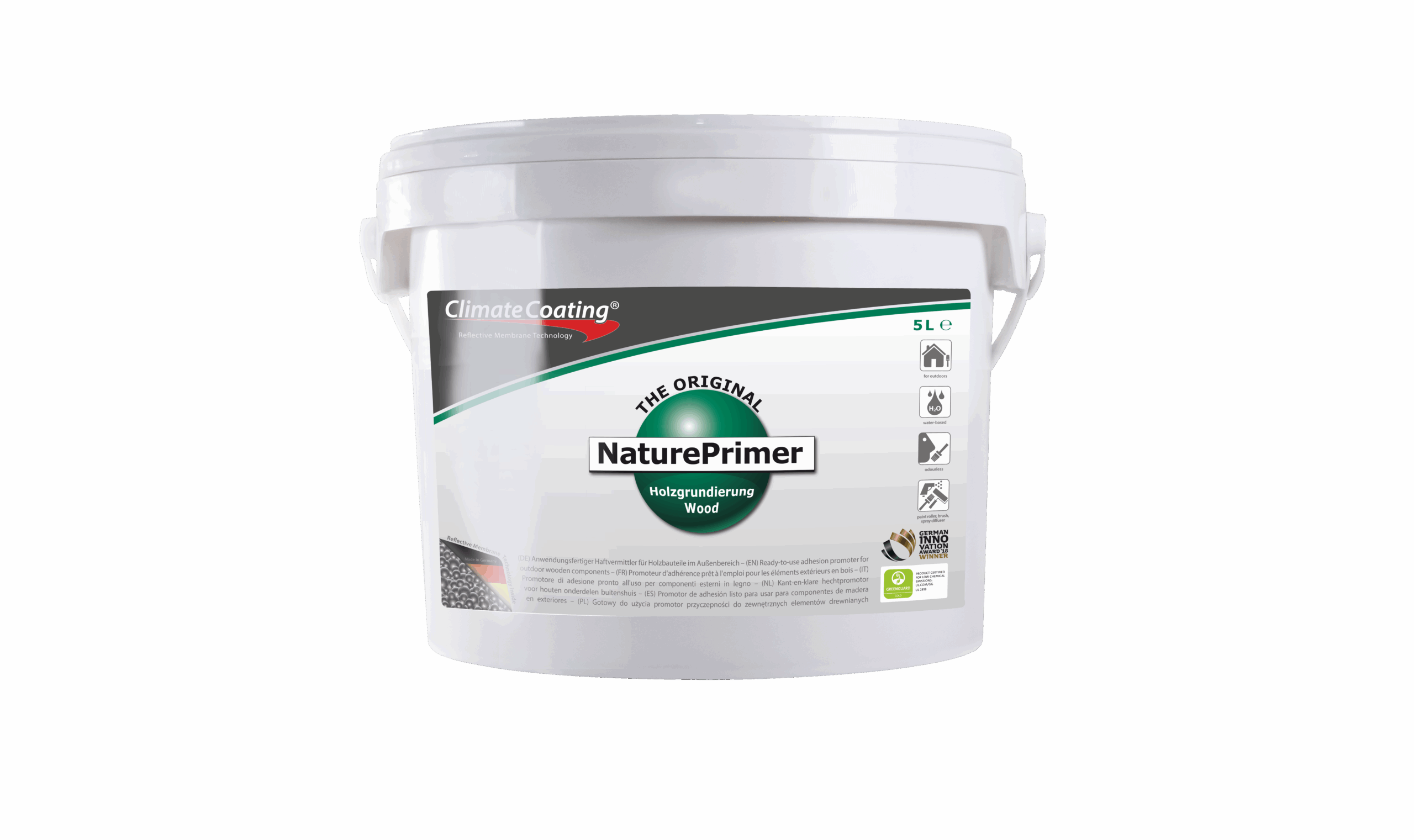 NaturePrimer ist ein anwendungsfertiger Grundieranstrich für begrenzt maßhaltige und nicht maßhaltige Holzbauteile im Außenbereich. Er basiert auf der reflektiven Membrantechnologie, ist variabel diffusionsoffen und abgestimmt auf die Eigenschaften von Nature.